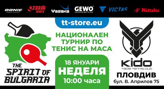 SPIRIT OF BULGARIA Отворен турнир по тенис на маса Начало 10.00 18.01.2026