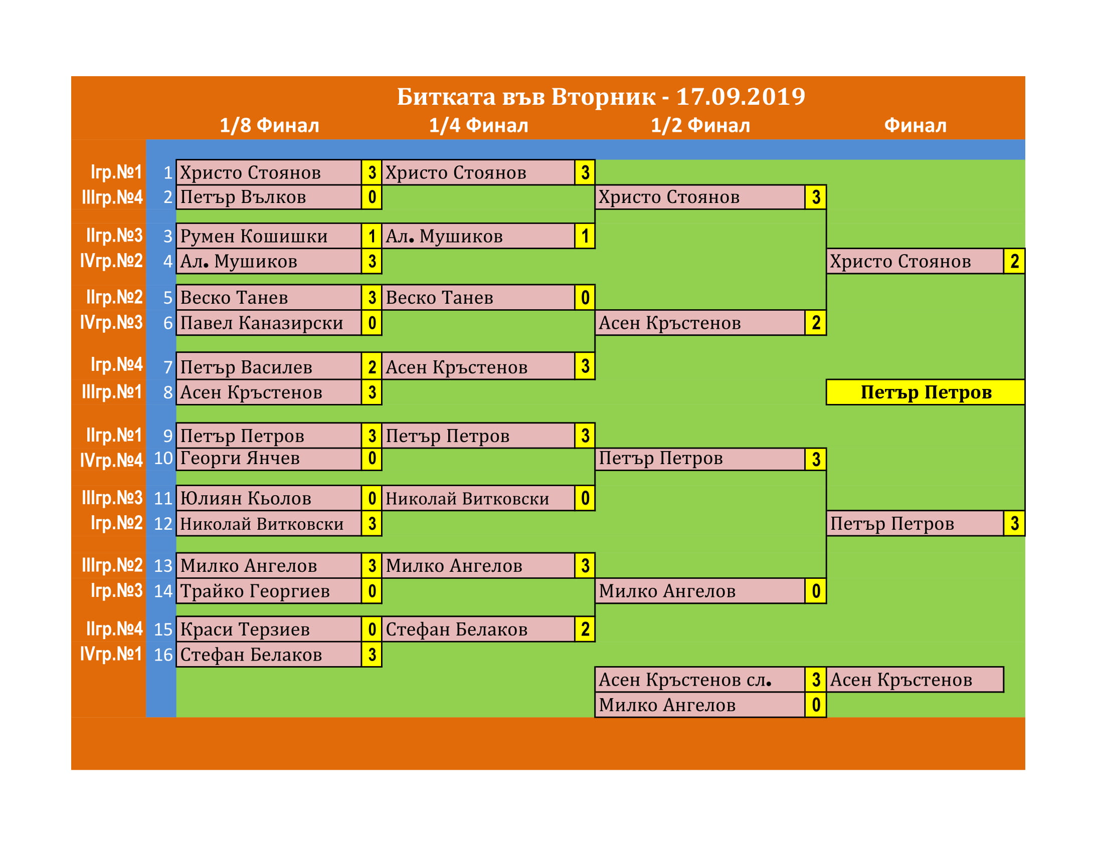 Начало на състезанието: Вторник от 18.30 часа.