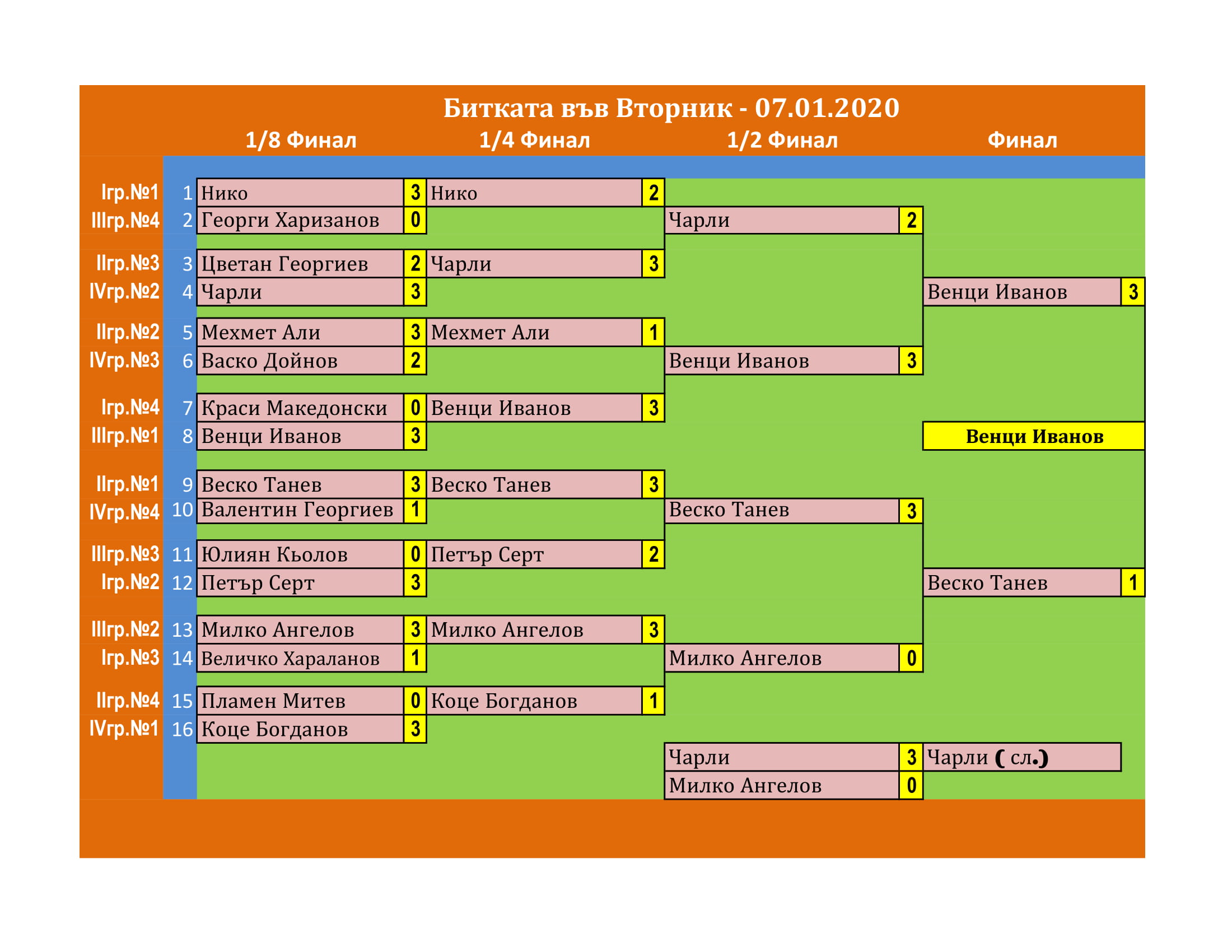 Победителят в турнира НЕ плаща такса участие.
