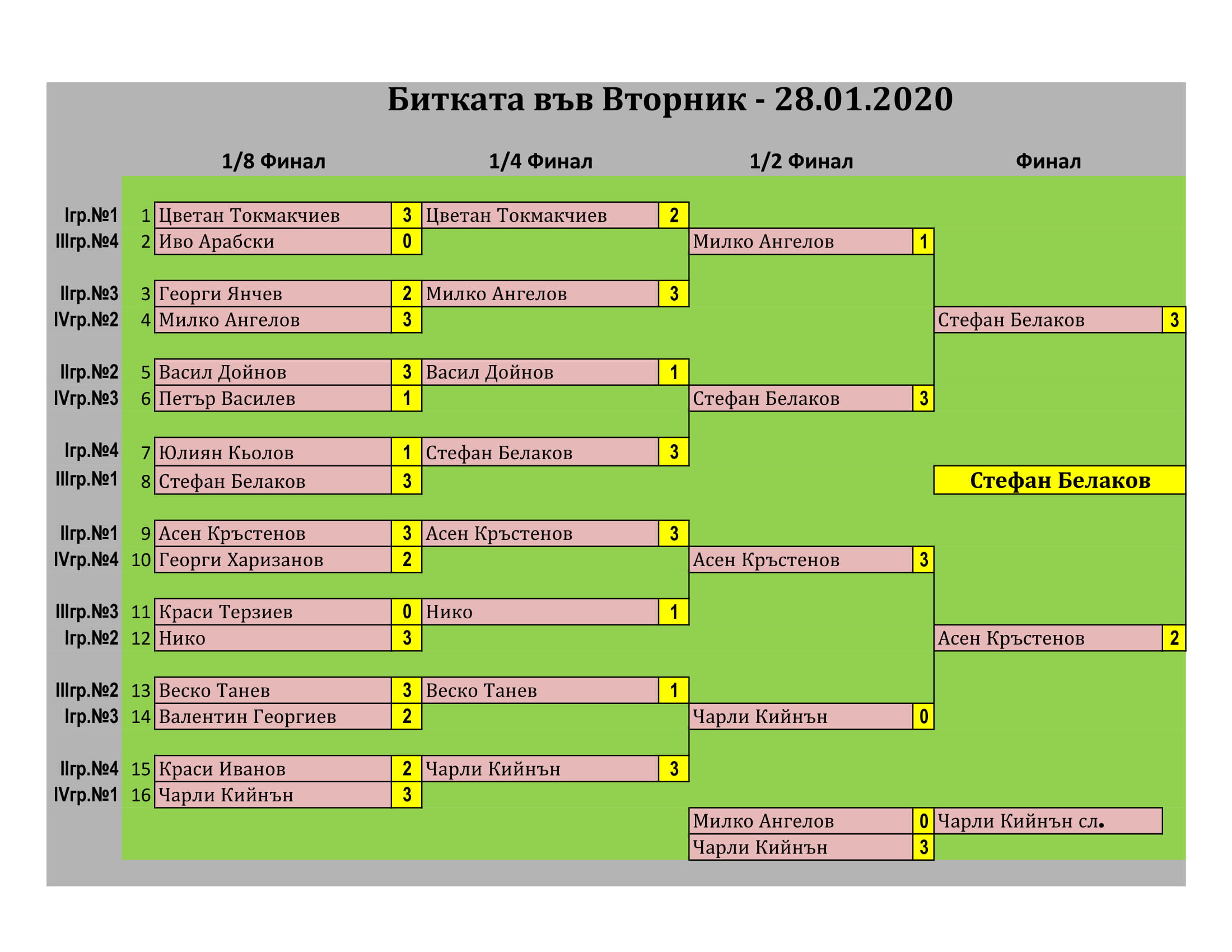 Битката във Вторник е състезание, което се провежда ВСЕКИ Вторник в залата на клуб КИДО .  Този турнир е най-ниската стълбица в различните турнири , провеждани в клуба. Също така,  Битката във Вторник е широко отворената врата за влизане в общността на КИДО.