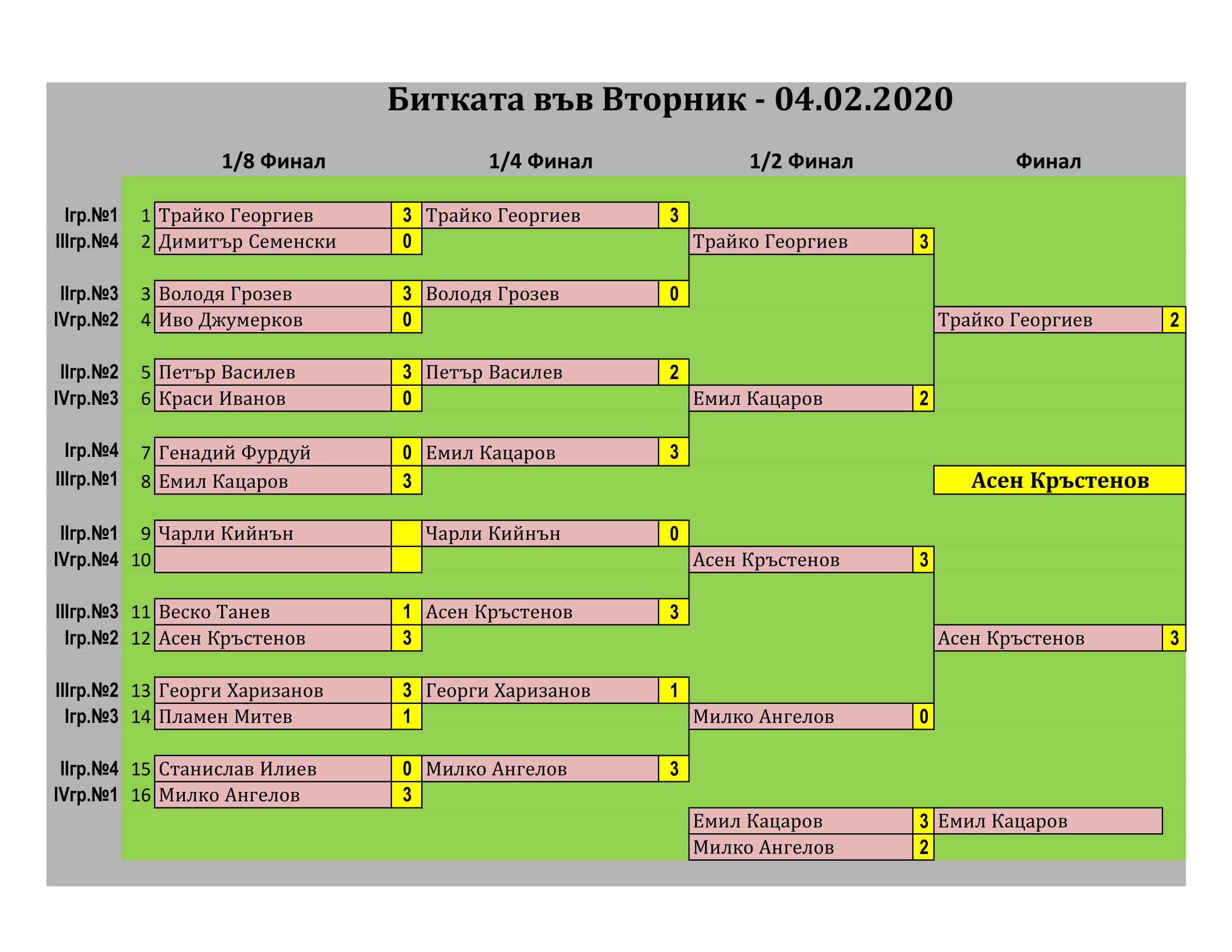 Победителят в турнира НЕ плаща такса участие.