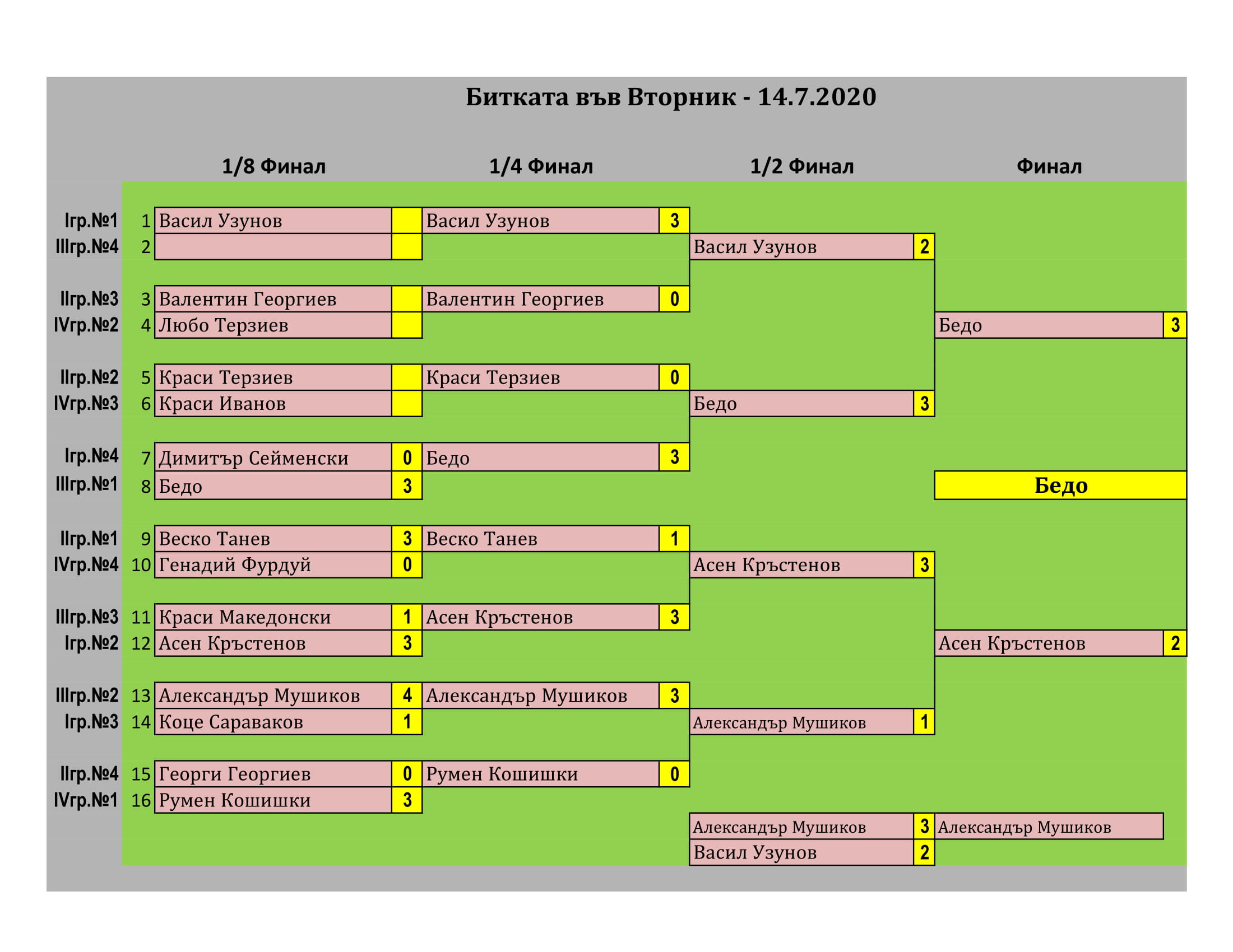 Победителят в турнира НЕ плаща такса участие.