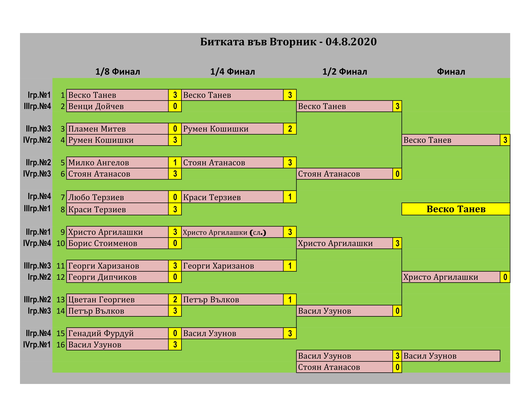 Победителят в турнира НЕ плаща такса участие.