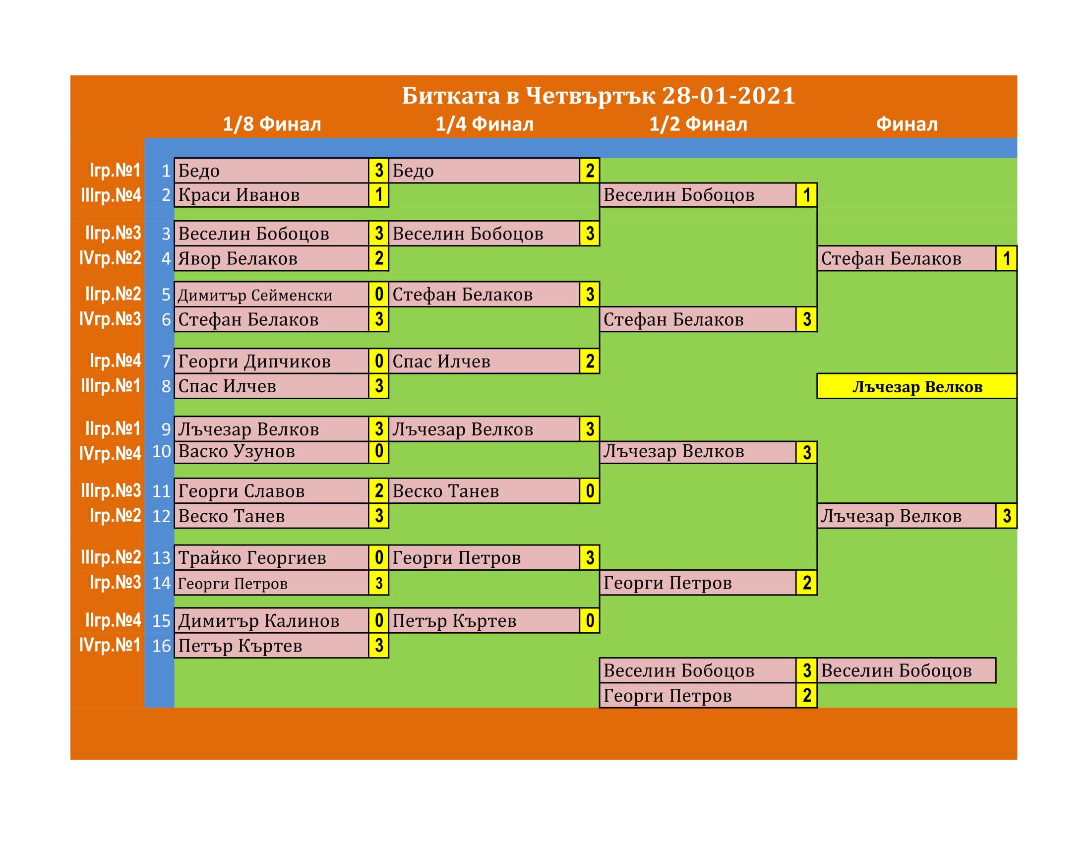 Битката в Четвъртък е състезание, което се провежда ВСЕКИ Четвъртък в залата на клуб КИДО .  Този турнир е предназначен за тези, които определят себе си за по-напреднали в тениса на маса. Както и за тези, които искат да проверят уменията си срещу по-силни опоненти.