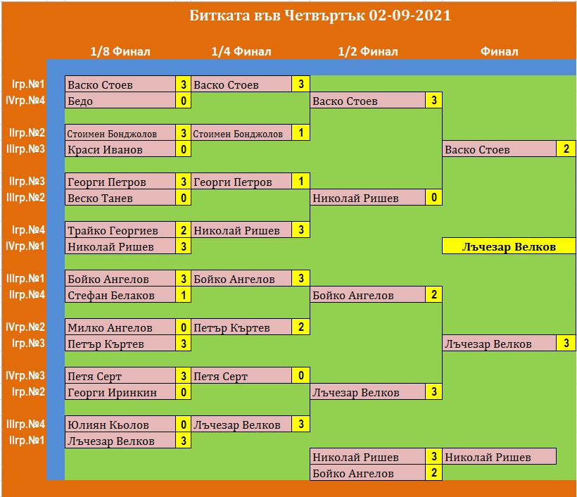 Битката в Четвъртък е състезание, което се провежда ВСЕКИ Четвъртък в залата на клуб КИДО .  Този турнир е предназначен за тези, които определят себе си за по-напреднали в тениса на маса. Както и за тези, които искат да проверят уменията си срещу по-силни опоненти.