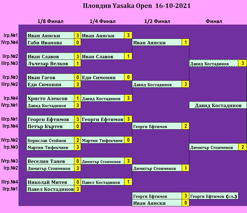 Считано от Ноември месец 2020 година името на турнира се променя на “Пловдив Ясака Опън”. Турнирите от този ранг ще се провеждат 9 пъти в годината, като оповестяването им винаги ще се извършва в началото на месеца и ще бъде съобразено със спортния календар.