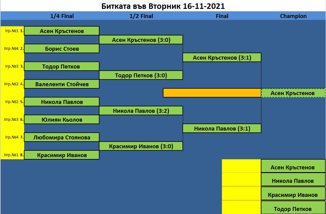 Битката във Вторник е състезание, което се провежда ВСЕКИ Вторник в залата на клуб КИДО .  Този турнир е най-ниската стълбица в различните турнири , провеждани в клуба. Също така,  Битката във Вторник е широко отворената врата за влизане в общността на КИДО.