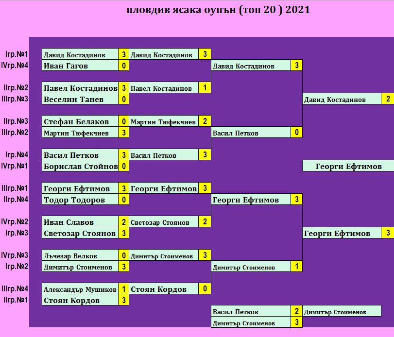 Благодарим най-сърдечно на всички, които взеха участие в нашите събития през 2021 година. Надяваме сме, че допринесли за развитието и популяризирането на нашия любим спорт - тениса на маса